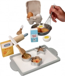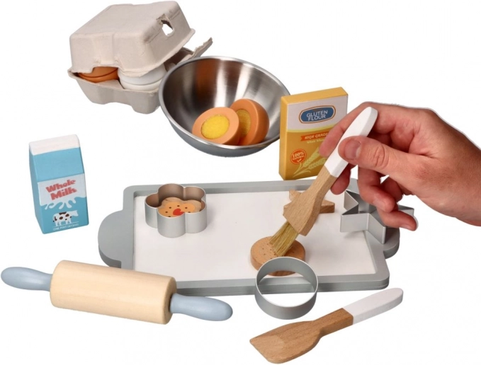 Váleček, metla, štětce, vykrajovátka a mísa umožní dětem napodobit skutečné pečení a procvičit manipulaci s nástroji.