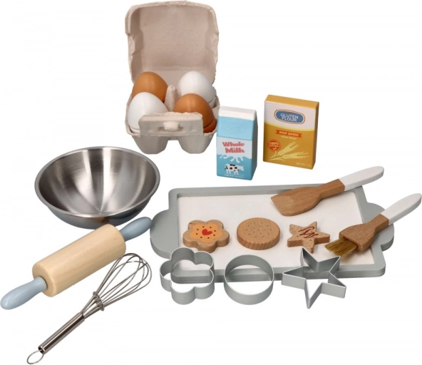 Tato bohatě vybavená sada pro hraní na pekaře přináší dětem autentický zážitek z kuchyně. Díky odolnému dřevu a nerezové oceli jsou jednotlivé díly bezpečné, příjemné do ruky a snadno se udržují. Děti si vyzkouší míchání, válení těsta, vykrajování a zdobení „sušenek“ – přesně jako dospělí.