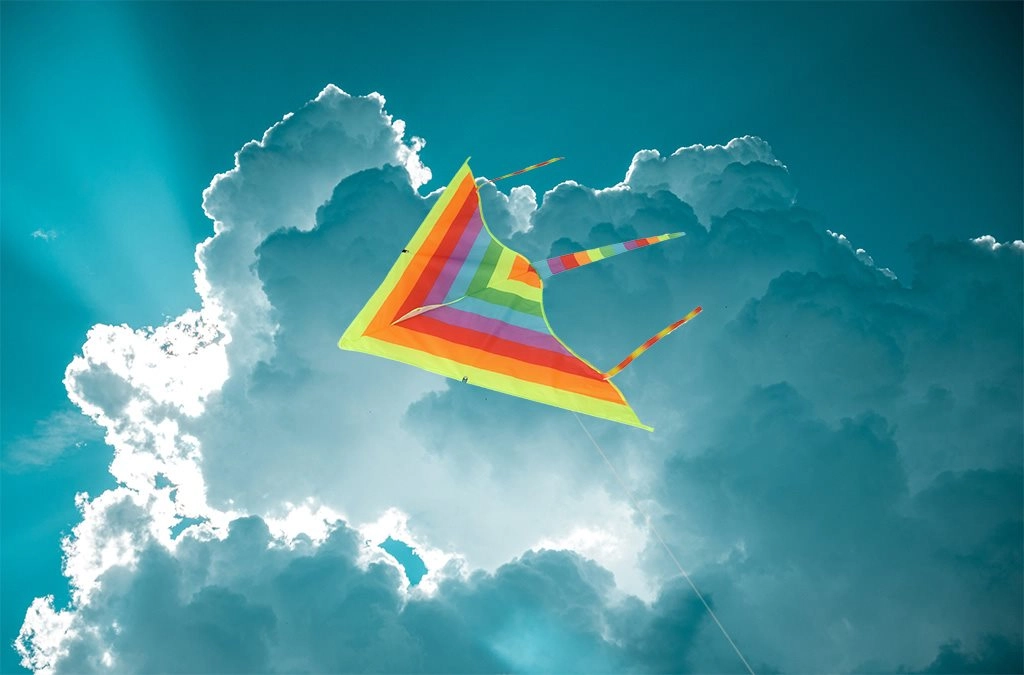 Trojúhelníková (delta) konstrukce a barevný ocas zajišťují stabilitu a klidný let i při proměnlivém větru.