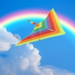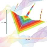 Rozjasněte každý větrný den s tímto velkým duhovým drakem v delta (trojúhelníkovém) tvaru. Je vyroben z odolného nylonu, má stabilizační ocas a v balení najdete i pevnou nylonovou šňůru s držadlem pro snadné ovládání. Skvělá zábava pro celou rodinu a perfektní způsob, jak strávit čas venku.