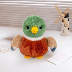Plyšová kachnička je krásná hračka v mnoha barevných tónech, která zaručeně přitáhne pozornost. Vyrobená z měkkého a příjemného plyše, spojuje odstíny zelené, hnědé, žluté a modré, což vytváří věrnou repliku divoké kachny. Její kulatá hlavička, rozložité křidélka a typický žlutý zobáček jí dodávají unikátní kouzlo, které získá srdce dětí i dospělých.