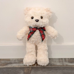 Ozdobná mašle v klasické skotské kostce představuje elegantní akcent, který medvídku dodává sváteční a dárečkový charakter. Medvídek má stabilní, stojící postoj a výborně se hodí jako společník na hraní, mazlíček na spaní nebo dekorativní prvek v dětském pokoji.