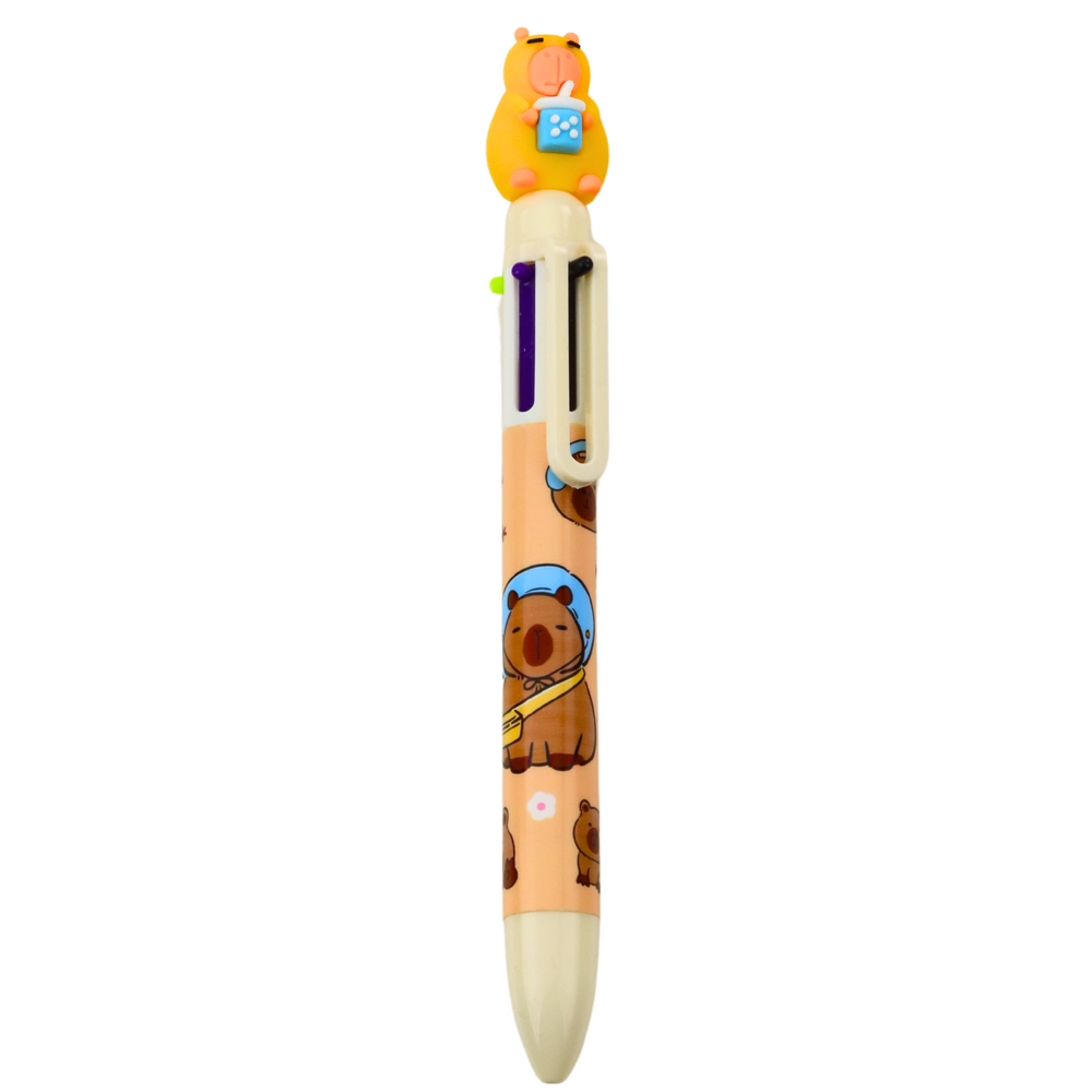 Toto barevné pero s motivem kapibary je nejen funkční psací náčiní, ale také zábavný doplněk, který ozvláštní školní a domácí poznámky. Má šest barev inkoustu v jednom těle s vysouvacími tlačítky pro snadné přepínání.