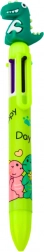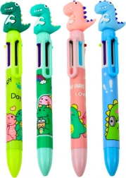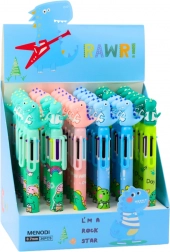 Toto vícebarevné pero je ideální pro děti, které milují dinosauří motivy. Pero obsahuje 6 barev náplní: modrá, červená, zelená, oranžová, černá a fialová. Každá barva je snadno k dosažení jednoduchým stisknutím příslušného posuvníku, což usnadňuje rychlou změnu barvy bez potřeby dalšího pera.