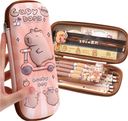 Tento prostorný penál je vyroben z odolného a snadno čistitelného materiálu. Disponuje hlavní komorou se síťovanými přepážkami, které pojmou propisky, tužky, pastelky, zvýrazňovače a další školní drobnosti. Zip umožňuje rychlý přístup k obsahu a chrání ho před ztrátou.