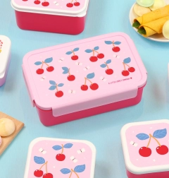 Svačinový box s motivem třešní od A Little Lovely Company je ideálním společníkem do školy i na cesty. Díky vzduchotěsnému víku a vyjímatelné nádobce udrží vaše svačiny čerstvé a organizované po celý den.