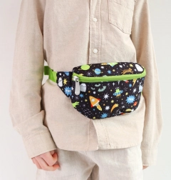 Tato tmavě modrá ledvinka s vesmírným potiskem nejenže přináší radost, ale také přidává na praktičnosti. S dostatečně velkou přední přihrádkou na peněženku a mobilní telefon a zadní kapsou na zip pro drobné cennosti, je tato ledvinka ideální pro každodenní dobrodružství.