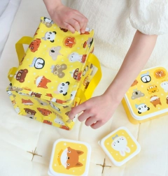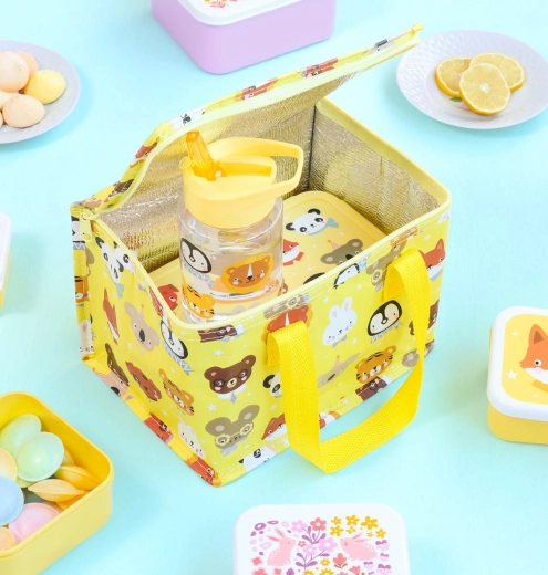 Tato žlutá chladící taška nejen vyniká svým krásným designem se zvířecími kamarády, ale také svou praktickostí. Je vyrobena z 90% recyklovaného plastu, což přispívá k ochraně životního prostředí.