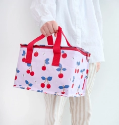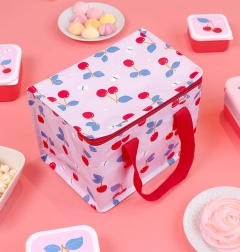 Chladicí taška se vzorem třešní je ideální pro uchování jídla a nápojů v chladu. Nabízí dostatek prostoru pro svačinové krabičky, láhve s vodou a čerstvé ovoce a zeleninu.
