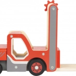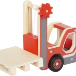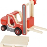 Perfektní dopravní prostředek pro mladé logistické experty! Umožňuje snadné zvedání a přemísťování břemen v dětském pokoji díky pohyblivé vidlici pomocí kladky. Součástí balení je i dřevěná paleta, což z něj činí nezbytnost pro každé hravé vozové parky.