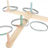 Tato hra je skvělým způsobem, jak trávit čas s rodinou a přáteli. Sada obsahuje 5 tyčí a 5 házecích kroužků, přičemž každý kroužek je ozdoben malým zvířátkem jako žába, veverka, ptáček, králíček a ježek. Díky měkkému materiálu kroužků si můžete hru užít jak venku, tak uvnitř. Cíl lze jednoduše sestavit do tvaru kříže nebo písmene T.