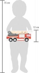 Perfektní dopravní prostředek pro malé hasiče! Tento dřevěný hasičský vůz se otočným žebříkem, který se otáčí o 360 stupňů, je ideální pro rané hraní si na hasiče. Kompaktní a bezpečný design umožňuje dětem snadno uchopit vozidlo a rozvíjet jemnou motoriku a koordinaci ruka-oko.
