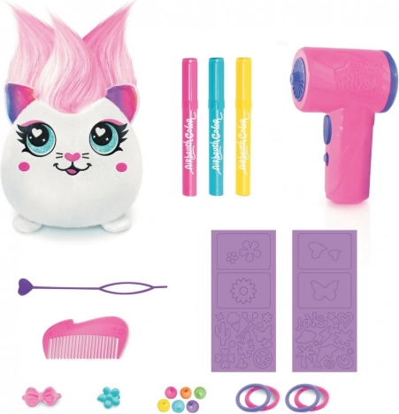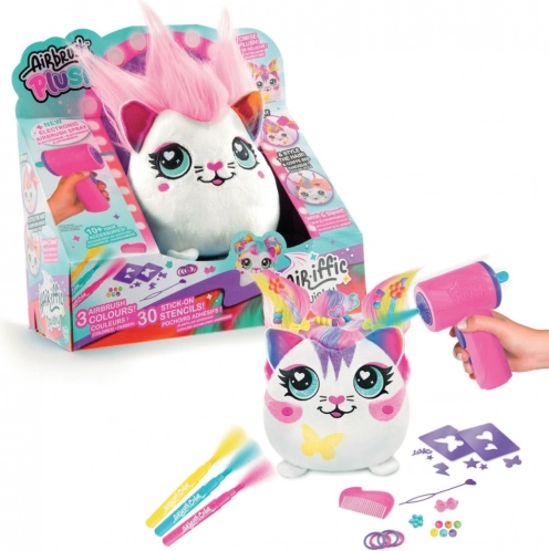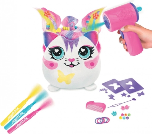 V této jedinečné sadě naleznete plyšáka s vlásky, airbush nástroj na baterie, tři fixy a třicet šablon pro neomezené možnosti dekorování. Po vyprání podle návodu můžete začít znovu a vytvořit nový design.