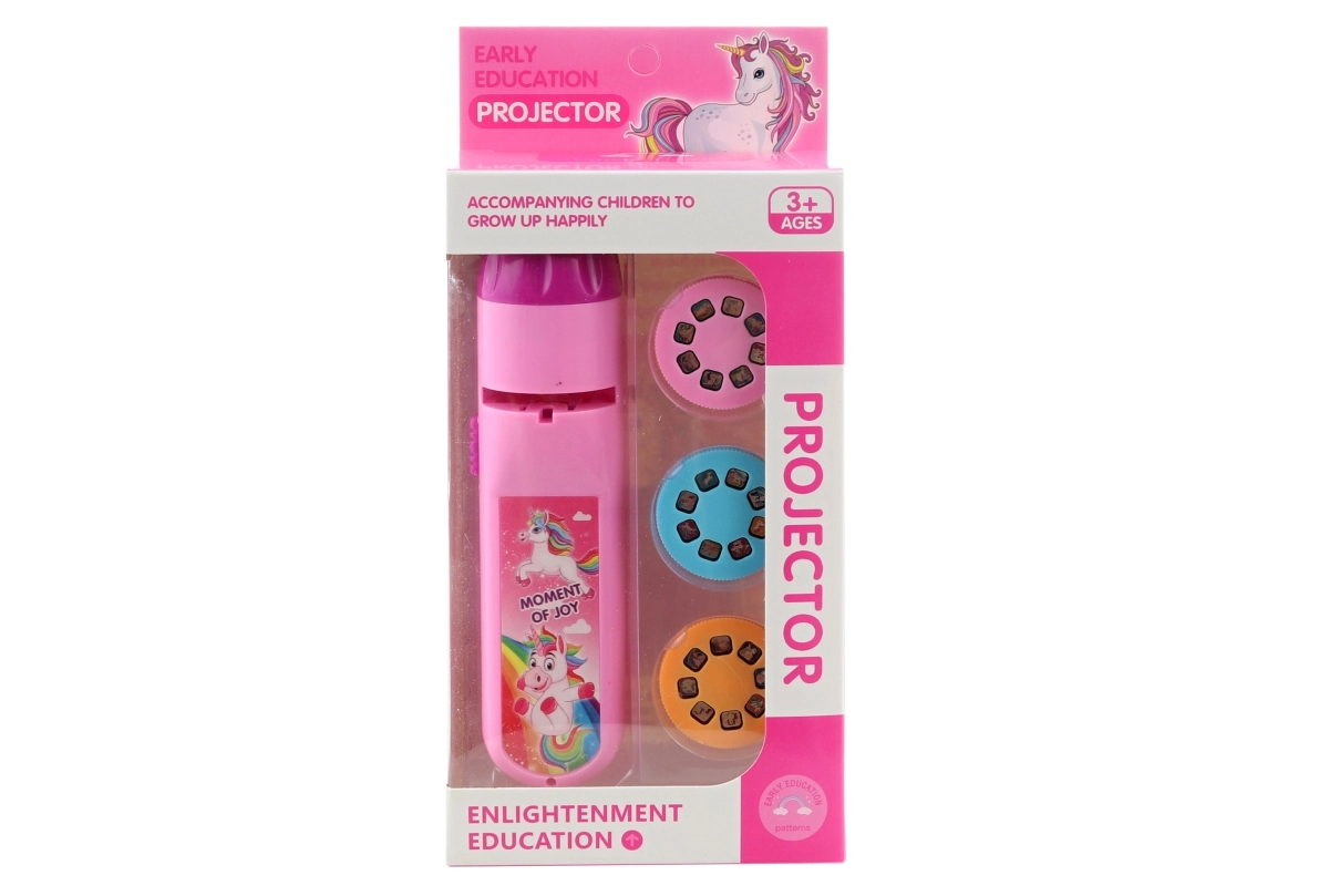 Dětský projektor s jednorožci je skvělou zábavou pro nejmenší! Tento plastový projektor na baterie nabízí promítání 24 obrázků jednorožců na zeď, díky čemuž děti vtáhne do kouzelného světa.
