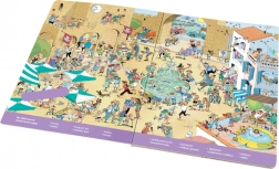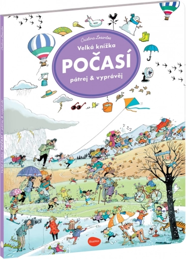 Seznamte se s proměnlivým počasím v dlouhých hodinách čtení a prozkoumávání. Kniha je plná detailních barevných ilustrací, které vybízejí ke hledání nových a vtipných příběhů a postav. Objevte příběhy s dobrým koncem i nečekané zápletky. Každá stránka nabízí nové dobrodružství, které naleznete jen v tomto krásném velkoformátovém leporelu.
