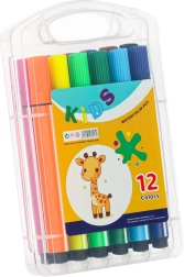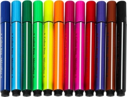 V balení najdete 2 černé popisovače pro kreslení, 12 barevných fix pro vybarvování a USB kabel pro snadné nabíjení.