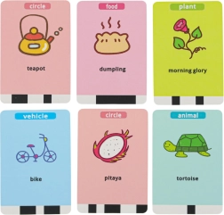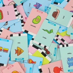 Sada 100 kartiček s ilustracemi a anglickými názvy podporuje přirozené osvojování slovní zásoby při zábavné interakci.