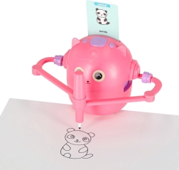 Vsadili jsme na jednoduchost a radost z učení. Stačí vložit kartičku s obrázkem, upevnit fix do robotí ruky a sledovat, jak vzniká obrázek krok za krokem. Dítě pak může ilustraci vybarvit a trénovat jemnou motoriku, trpělivost a soustředění. Interaktivní hlasové pokyny v angličtině přirozeně rozšiřují slovní zásobu.