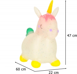Vyroben z pružné a odolné gumy, skákací jednorožec je měkký a elastický, s certifikovanou bezpečností.
