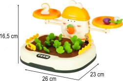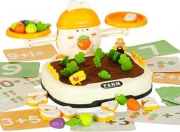 Set zapojuje dítě do vzrušující hry, při níž sází a vytahuje zeleninu a umisťuje je na váhu. Tato zábava rozvíjí trpělivost, reflexy a pomáhá zvládnout drobné nezdary. Ideálně rozvíjí koordinaci ruka-oko a motorické dovednosti.