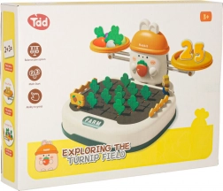 Speciálně navržená deska s otvory umožňuje dětem procvičovat přesnost pohybů - pokládat a vytahovat mrkev pomáhá rozvíjet motorické dovednosti a zavádí prvek zdravé soutěže v podobě hry „kdo rychleji sklidí“.