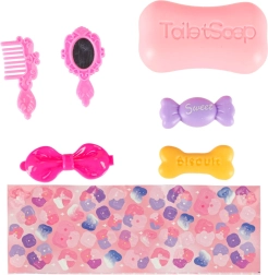 • Příslušenství: hračkové mýdlo, hřebínek, zrcátko, mašle-sponka, bonbón, sušenka