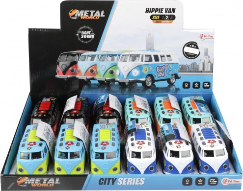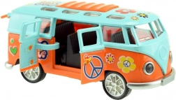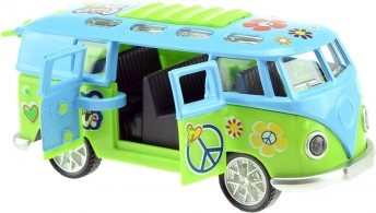 Objevte miniaturní retro autobus, který zaujme na první pohled barevným „hippie“ stylem a po spuštění překvapí efekty. Stačí jej natáhnout dozadu a pustit – setrvačník se postará o svižnou jízdu, zatímco světla a zvuk motoru podtrhnou zážitek.