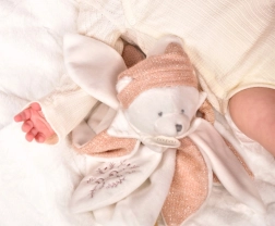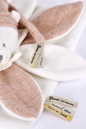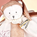 Saténové stuhy s láskyplnými vzkazy ve francouzštině, které zdobí čepičku a dečku, dodávají každému mazlení ještě něžnější nádech. Hračka je balena v luxusní dárkové krabičce, která je uvnitř osvětlena LED diodami.