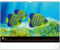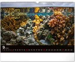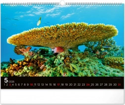 Květen přináší obraz korálového ráje s pestrobarevnými rybami, které dodávají kalendáři jasné a živé barvy. Tento měsíc září optimismem a krásou.