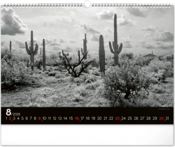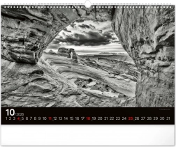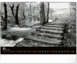 Můžete se těšit na jemné úpravy krajinných fotografií, kterými vás bude kalendář provázet po celý rok, a to v rozměrech 48 x 33 cm. Jednoduché černobílé kalendárium dobře ladí s každým snímkem a dotváří celkový dojem z elegantního designu.