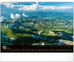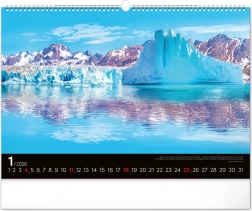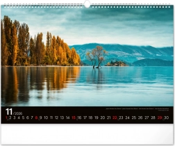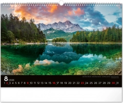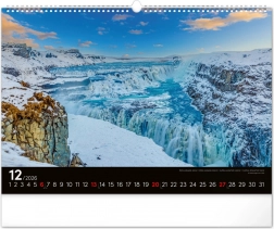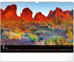 Objevte krásu přírody každý měsíc s tímto kalendářem, který nabízí romantické záběry horských údolí, nížin, vodstev a pouští. Součástí je jednoduché kalendárium, které je umístěno na stylovém černém pozadí.