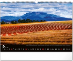 Dvanáct pestrobarevných přírodních výjevů z celého světa v nástěnném kalendáři pro rok 2026.