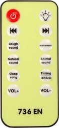 Ovládání je zajištěno pomocí dálkového ovládání, které reguluje osvětlení, hlasitost a zvuky. Funkce zahrnují: