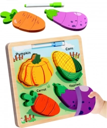 Dřevěná edukativní skládačka se zeleninou a kreslicí tabulí