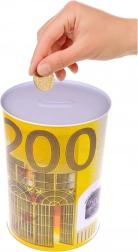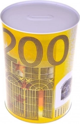 Tato efektivní kovová pokladnička v podobě plechovky je potisknuta bankovkou 200 euro. Skvělá pro všechny, kdo chtějí spořit s potěšením a stylem. Díky realistické grafice s výraznými detaily a robustní, cylindrické konstrukci plní nejen praktickou funkci, ale také estetickou – může být dekorativním prvkem na stole, polici nebo komodě. Vyrobena z odolného kovu, zaručuje odolnost vůči každodennímu používání, drobným nárazům a mechanickému poškození, což přispívá k její dlouhé životnosti.