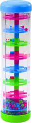 Senzorická trubka s barevnými kuličkami je perfektní pro rozvoj smyslového vnímání a soustředění dětí. Po otočení trubky začnou kuličky přeskakovat po spirálních plošinách a vydávat klidný zvuk připomínající déšť.