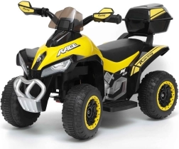 S touto žlutou akumulátorovou čtyřkolkou vaše dítě zažije mnoho dobrodružství! Její sportovní design inspirovaný závodními vozy povzbudí děti k aktivní hře a pohybu. Díky kvalitnímu plastovému provedení s gumovými kolečky je jízda nejen pohodlná, ale i bezpečná.