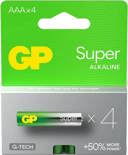 Alkalické baterie GP Super LR03/AAA nabízejí vylepšenou výdrž a ochranu proti vytečení, to vše v ekologickém balení.