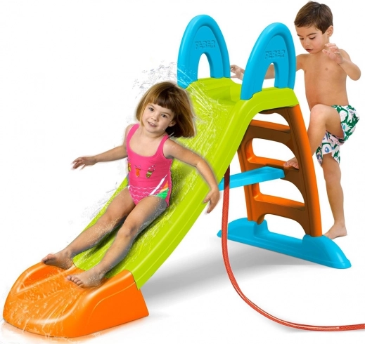 Zahradní dětská skluzavka od značky Feber o délce 152 cm nabízí nejen spoustu zábavy, ale díky možnosti připojení zahradní hadice i osvěžení během horkých letních dnů. Je vyrobena z kvalitního plastu a má barevný a odolný design ideální pro každou zahradu.