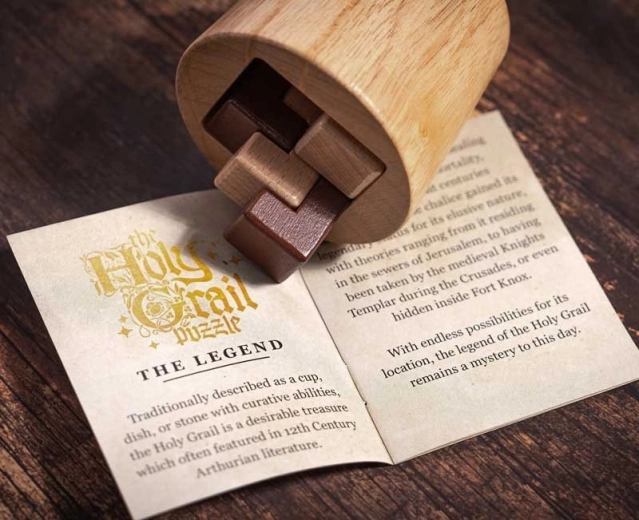 S hlavolamem Svatý Grál vstoupíte do světa mýtů a legend. Tento nádherný dřevěný a kovový hlavolam je součástí kolekce, která přináší nejúžasnější příběhy světa. Vyřešte hlavolam, uvolněte dřevěné bloky z kalicha a prozkoumejte tajemství ukryté relikvie.