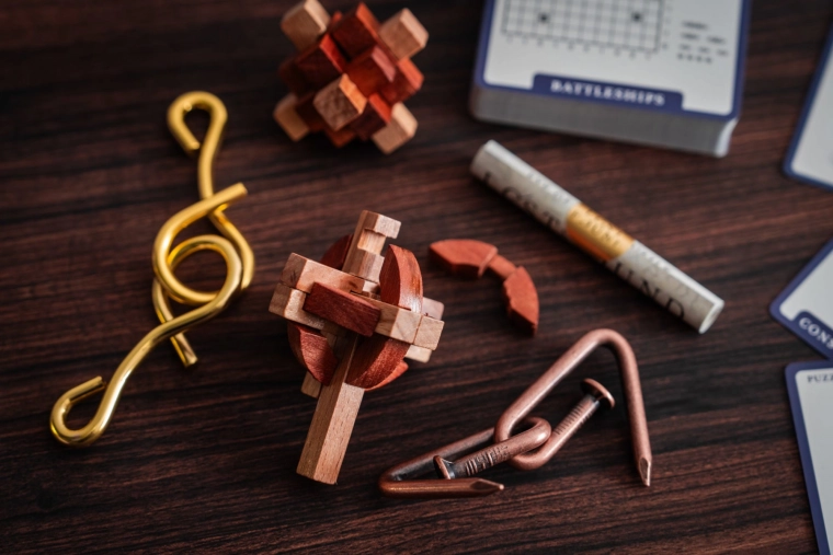 Každý hlavolam je pečlivě navržen tak, aby se stal výzvou i pro nejzkušenější řešitele. Vychutnejte si kombinaci dřeva a kovu, které tvoří harmonii mezi starodávnou estetikou a moderním designem.