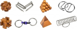 Tato oblíbená sada zahrnuje osm kvalitních dřevěných a kovových hlavolamů, každý z nich je inspirován slavnými historickými osobnostmi a jejich příběhy: