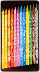 Pastelky jsou balené ve stylové plechové krabičce, která obsahuje 12 ks této jedinečné pomůcky pro všechny kreativitymilovné umělce.