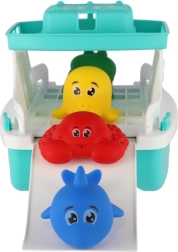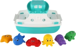 Tato dětská loďka do koupele je navržena pro zábavu i rozvoj dovedností. Pluje na vodě, má vyklápěcí rampu pro naloďování a vykládání figurek a nabízí dostatek prostoru pro hraní na palubě. Součástí jsou měkké, barevné mořské a zvířecí postavičky, které děti mohou vozit, skládat a klouzat po rampě.