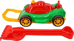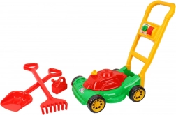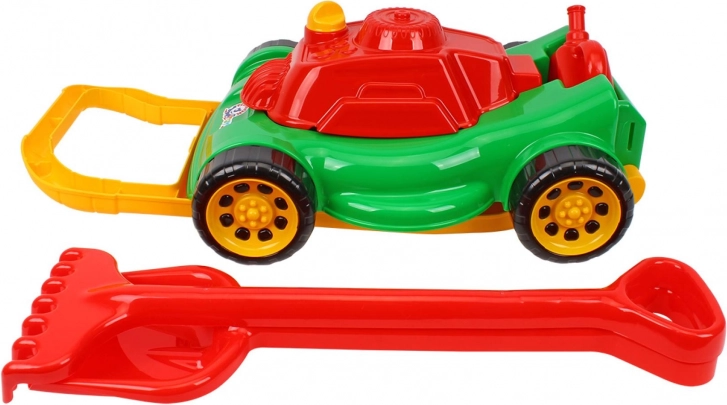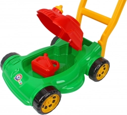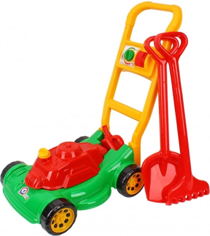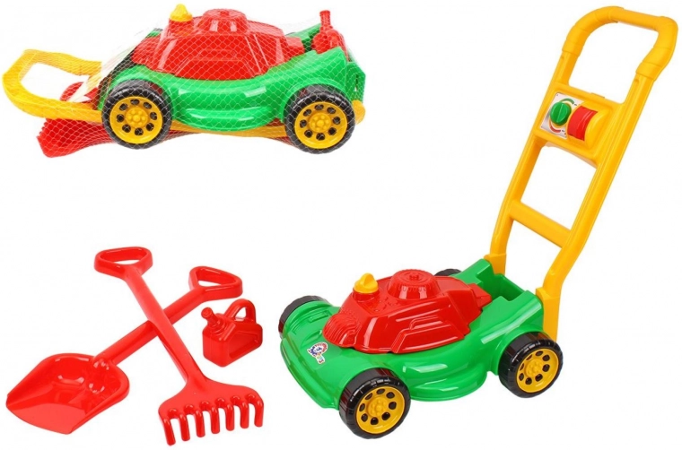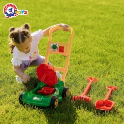 Tato barevná plastová sekačka s doplňky je skvělá hračka pro první zahradnické pokusy. Děti mohou tlačit sekačku, točit ovládacími prvky a napodobovat práci dospělých, což rozvíjí jejich motoriku i představivost. Lehká konstrukce a oblé hrany zajišťují bezpečné hraní pro nejmenší.