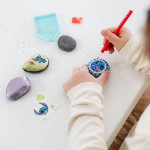 Objevte kouzlo tvoření se sadou pro malování a zdobení kamenů s motivem Stitch. Kompletní kreativní set obsahuje vše, co potřebujete – od kamenů a samolepek až po speciální nástroje pro přenos kamínků. Skvělé pro rozvoj jemné motoriky, fantazie a zábavu dětí i dospělých.