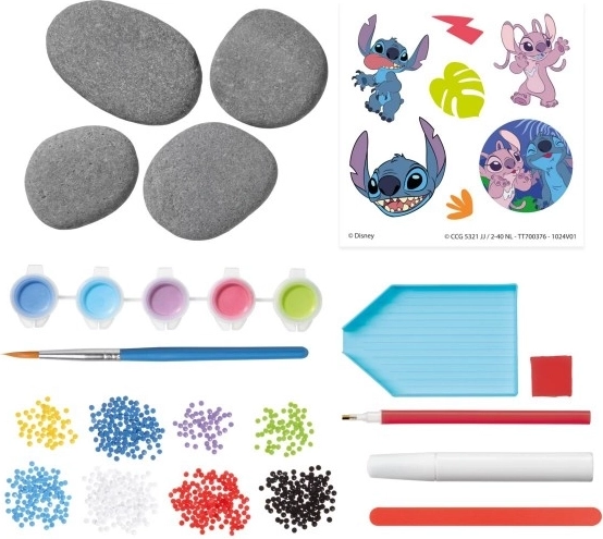 Tato zábavná kreativní sada se postará o hodiny tvoření. Díky propisotovým samolepkám a cca 400 ks dekorativních kamínků snadno vytvoříte originální kamínky inspirované oblíbeným motivem Stitch. Když dojdou kameny z balení, můžete pokračovat s úlovky z přírody.