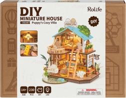 Objevte kouzlo tvoření s domečkem, který obsahuje prostornou ložnici, útulný obývací prostor s houpačkou a jídelním koutem, a v prvním patře balkon. Každý detail je precizně vyřezán, zahrnuje měkké ložní prádlo, noční stolek s lampou, notebook, knihovnu, automat na cappuccino a květiny. Díky LED osvětlení v přízemí a prvním patře se váš mazlíček cítí příjemně.