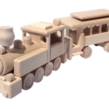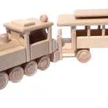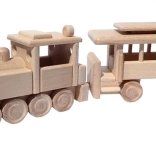 Vláček je vyroben z masivního buku a ošetřen pouze voskem a leštěním. Zachovává autentickou kresbu dřeva, je šetrný a bezpečný pro dětské ruce.