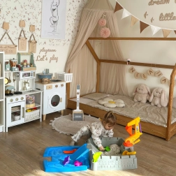 Přenosné pískoviště ve tvaru hradu od značky WOOPIE nabízí dokonalou zábavu pro děti. Proměňte svůj dvůr, terasu nebo dokonce obývací pokoj v magické prostředí plné kreativity a nezapomenutelných momentů.